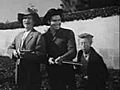 He tries to convince her with the warm weather and the movie stars, but Granny is firm. Jed finally puts her rocking chair with her on it on the truck and they drive off. In Beverly Hills, the president of the bank, Milburn Drysdale, is preparing the mansion for the Clampetts arrival, along with his secretary, Jane Hathaway. He says that he has his gardeners working on their mansion, which happens to be next door to Mr. Drysdale's. An employee comes in and tells him that Mrs. Drysdale is not happy about her gardeners working on the Clampett's mansion and neglecting theirs. A phone call arrives telling Mr. Drysdale that the Clampett mansion is being invaded by outlaws. Mr. Drysdale jumps up and hurries off. At the mansion, the Clampetts are all holding guns pointed at the gardeners. They think the gardeners are prisoners and the mansion is a jail. They wait and wait until they hear a police car. Thinking they are going to be rewarded for their noble act, they get a surprise when they are thrust into jail. Mr. Drysdale comes in, telling the guards they've arrested one of the richest men in the country. He looks in the cell, expecting Mr. Clampett to be wearing formal clothes. When he doesn't find what he is looking for, he grabs Jed's shirts demanding what he's done with Jed Clampett. Jed says he's Jed Clampett and would appreciate if he would let go of his Sunday shirt. Mr. Drysdale is surprised to see Jed Clampett look like that and demands to the guards that they open the door. He gets out Elly May and Granny and they all drive to the mansion. Up the driveway, the Clampetts, still thinking it's a prison, blames Mr. Drysdale for this mess-up. The episode ends with them running away as from the mansion as quickly as possible.